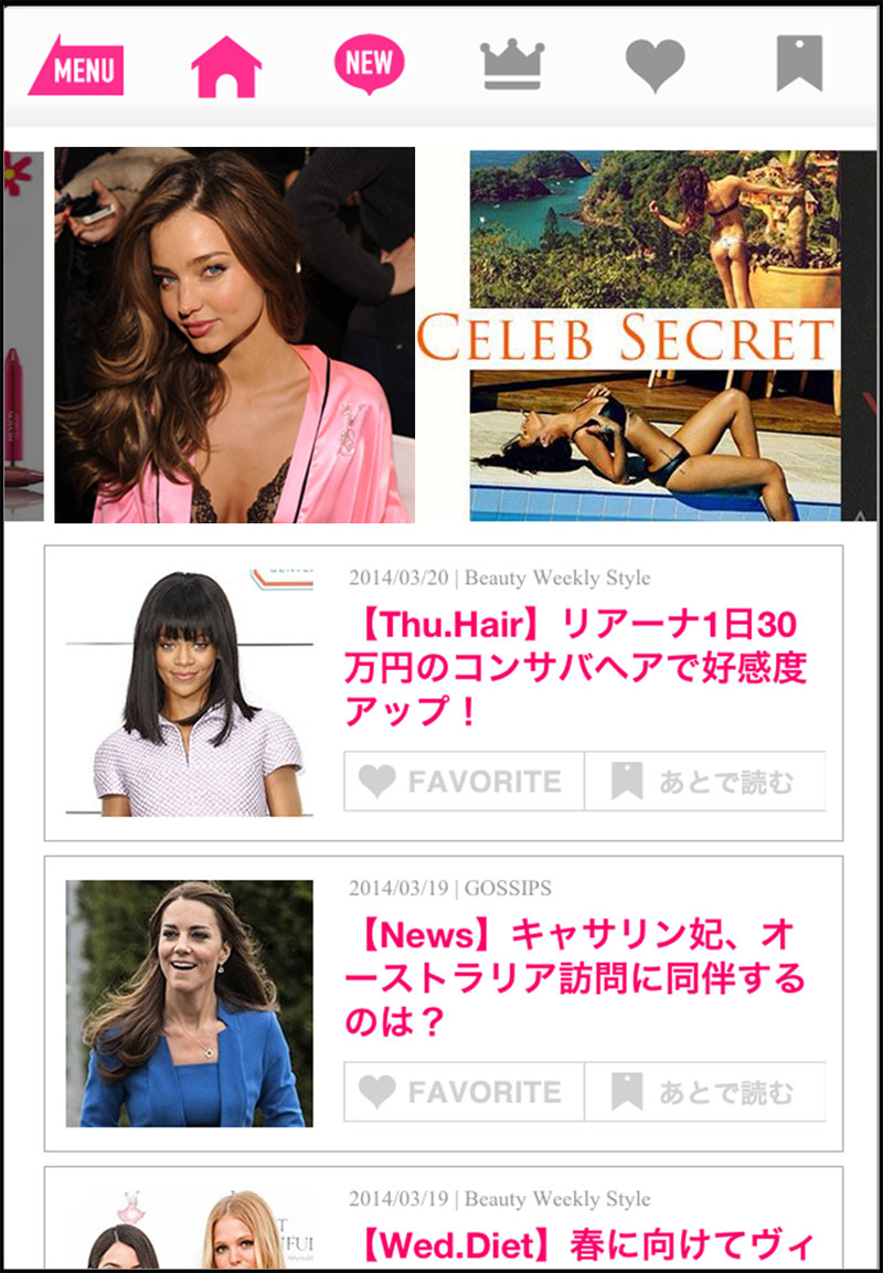 曜日ごとのテーマに合わせた美容やファッションの情報を毎日更新し、編集部独自の視点でピックアップするゴシップ情報や企画記事も定期的に配信するほか、海外セレブの美容習慣やライフスタイルに合わせた日本の新商品やサービスも紹介します。