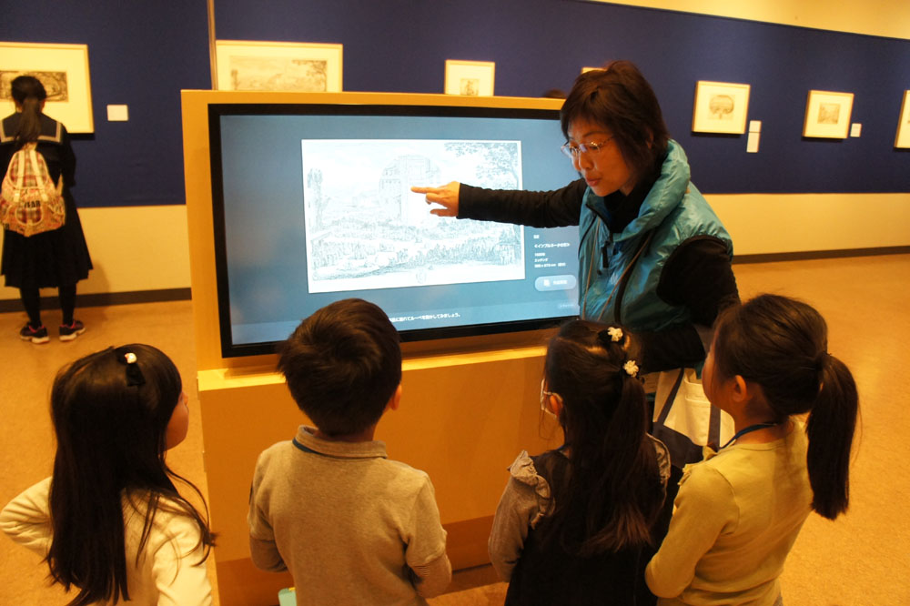 今回の展覧会では、親子向けのワークショッププログラムなど、西洋美術館の教育普及活動にも「みどころルーペ」が利用されています。「みどころルーペ」をきっかけに、「何が描かれているのだろう」、「線の書き方に違いがあるか」といった、じっくりと作品を見ることで引き出された子供たちの気づきが、その後の鑑賞や作品制作にも生かされることも期待されています。