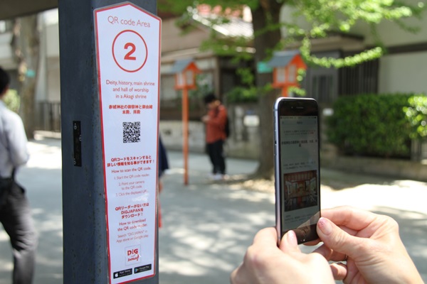 今回、赤城神社内の各施設にQRコードを掲出し、そのコードをスマートフォン等で読み込むことによって、参拝者、観光客にとって魅力的な情報を多言語で配信するサービスを提供します。
