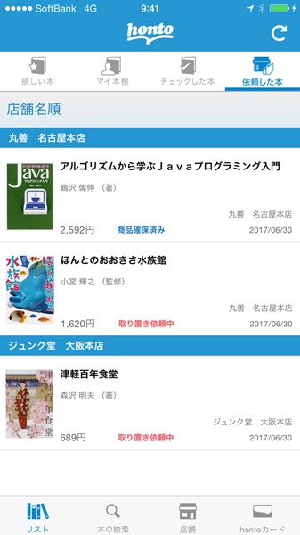 『honto with』で従来より提供している書店の在庫検索機能に加え、店舗での本の取り置き・取り寄せ依頼機能を7月12日に追加しました。希望店舗に在庫がある場合には取置、在庫がない場合は取寄ができ、店舗で書籍の準備ができたらプッシュ通知でスマホ上にお知らせが届きます。