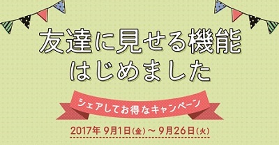 9月1日~26日に「友達に見せる」機能のご利用でクーポンプレゼント