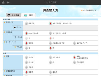 浴室、キッチン等の空間別に、省エネ機器の効果を試算するとともに、設備性能(快適性、清掃性等)の診断を行う。 |