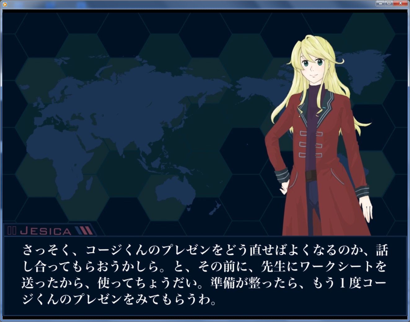 - 教材のキャラクターが学習の課題の提示やナビゲーションを行うなど、シナリオに準じて授業を進行するように構成されています。