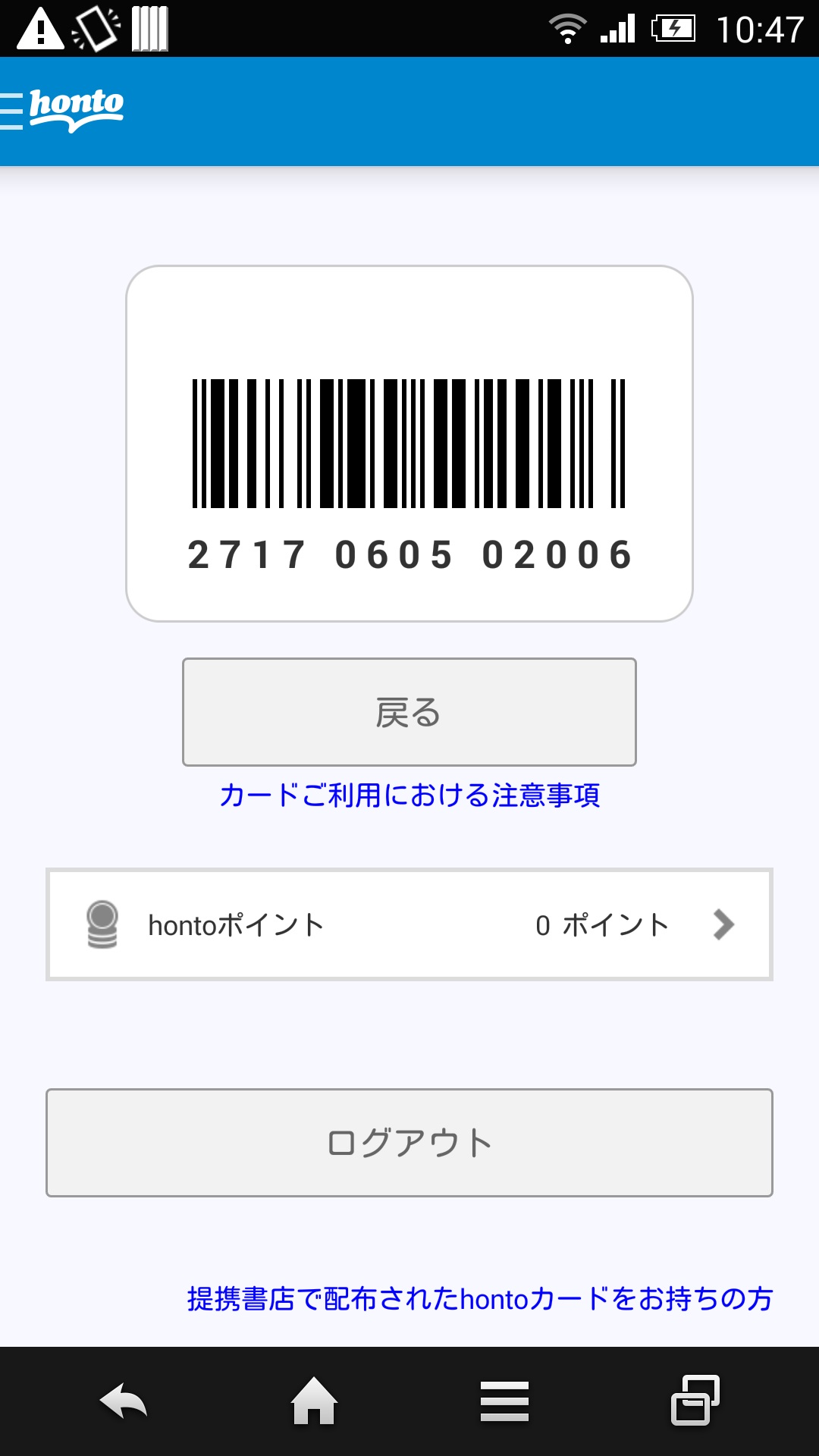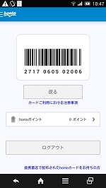 - hontoカード(会員証)の会員番号をアプリに登録することで、会員証バーコードが表示されます。リアル書店での買い物時に、会員証バーコードを提示することで、hontoポイントが貯まります。