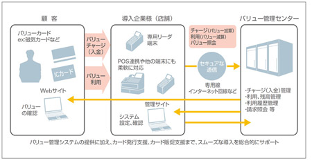 DNPとバリューデザインは2009年3月に業務・資本提携し、小売業や飲食業などのさまざまな企業向けにハウスプリペイドカード関連のASPサービスを提供してきました。バリューデザインは、「クラウド型ハウスプリペイド運用サービス」を406社28,103店舗※1に導入しており、国内シェアNo.1※2となっています。