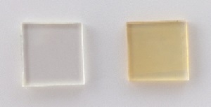 写真左:DNP品 透明、写真右:汎用品 黄変