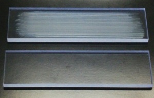写真下:DNP品 傷なし、写真上:汎用品 傷あり