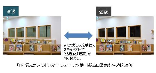 大日本印刷株式会社(本社:東京 社長:北島義俊 資本金:1,144億円 以下:DNP)は、2枚のガラスをスライドさせることで、透明から遮蔽に切り替えが可能な「DNP調光ブラインドスマートシェード」を開発しました。2016年4月に販売を開始します。