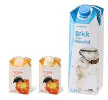 SIGの充填システムは、ドリンクスプラス(drinksplus)という名称で飲料に果物、野菜、シリアル、ゼリー等の小型固形物を入れる事も可能で、既にアジアでは中国、韓国で広く採用されています。飲料カートンにこのような固形物を入れられるのはSIG社の無菌充填システム独特のものです。加えて同社の充填システムは、最大24,000カートン/時間という紙容器では世界最高水準の充填スピードを有するとともに、短時間での品種替えや資材ロスが少ないという特長もあり、柔軟性と低コストを両立することが可能です。