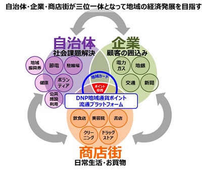 政府は「まち・ひと・しごと創生総合戦略」を制定し、地域の稼ぐ力や価値を高めるまちづくりの支援に取り組んでいます。こうした動きも受けてDNPは、地域情報ポータルサイト「まいぷれ」を運営するFLNとの協業を強化し、自治体、地域に密着した企業、商店街が三位一体となって地域の経済発展を支援するサービスを本年7月より提供しています。