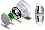 キャスター内部の電磁誘導型回転式発電ユニットの構造