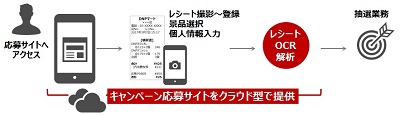 レシートキャンペーンのオプションとして、生活者から送付されたレシート画像をOCR(光学式文字認識:OpticalCharacter Recognition)解析し、購入金額や対象商品の確認のほか、同一のレシートで複数回応募するなどの不正利用の監視を行います。この機能によって、キャンペーンに関する企業の業務負荷軽減につなげていきます。