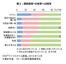 既婚男性のうち食品や日用品を買う人が半数を超え、「料理」や「献立を考える」についても約3割になるなど、既婚男性が家事に幅広く関わるようになってきています(図2)。家庭生活を主に主婦が担う専業主婦世帯と比べ、共働き世帯は利便性の高いサービスや商品を取り入れながら、それぞれの家庭に合う生活をつくることに積極的です。今後は、これまで以上に共働き世帯の新しいニーズに応える店舗やサービスづくりが求められていくことが考えられます。