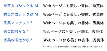 【今回「FONTPLUS」に追加した5つの「秀英体」デジタルフォント】