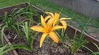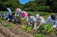 二社で46名が参加し、100m2の広さの地面に約900株のハマカンゾウを植え付けました。