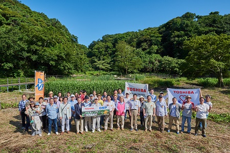 ハマカンゾウは、生息地の三浦半島・小網代の森において盗掘被害や高潮の影響によって激減しており、東芝ライテックは2012年5月から自社工場内で生息域外保全を行っていました。2015年には二社の連携活動の一環として、DNPテクノパック横浜工場へ30株が移植され、1年間で113株まで増やすことに成功しました。DNPテクノパックは、そのうち82株を2016年6月に本来の生息地である小網代の森へ返還するとともに、敷地内に新たに株を植え付けて生息域外保全を継続しています。