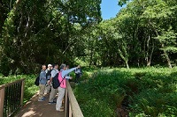NPO法人小網代野外活動調整会議 代表理事 岸由二先生(左)によるご説明を聴きながら小網代の谷を散策。