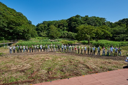 今回、NPO法人鶴見川流域ネットワーキング、小網代の森の維持管理を担うNPO法人小網代野外活動調整会議の代表理事である岸由二先生の指導のもと、二社の社員や家族が参加し、約900株を森へ植え付ける合同返還式を2017年6月4日に実施しました。