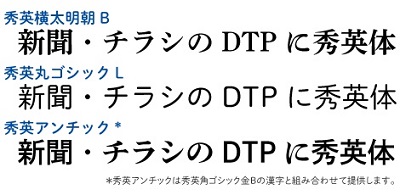 今回「パーソナル編集長」へ提供したのは、「秀英横太明朝B」「秀英丸ゴシックL」「秀英アンチック」の3書体です。生活者が利用できるDTPソフトに組み込んで(バンドルして)提供することで、より手軽に、プロのデザイナーにも愛用されている秀英体フォントを利用できるようになりました。