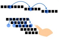 文章を読むとき、人は無意識のうちに文字や行を飛ばして読んでしまうなど、目線の移動に失敗してしまうことがあります。DNPが独自開発した「DNP文字情報伝達インタフェース」は、このような失敗をなくすよう、人の目の動きを誘導し、スムーズな「読み」をアシストします。