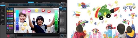 パソコンとカメラを使い、何にも触れずに体を動かして演奏する新しい発想の楽器アプリケーション「KAGURA」や、タブレット端末を使った直感的な操作と紙の塗り絵の要素の組み合わせによって自由な創造力を生み出す「シャッフルぬりえ」など、日本発のインタラクティブな体験型コンテンツを本展示用にオリジナルに編集して紹介します。