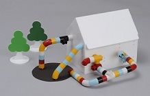 ○重力が遊びになる「バランス積み木」(左) ○パイプ同士をつなげて造形物をつくる「Tublock」(右)