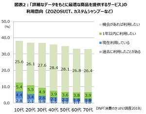 図表2 : 詳細なデータをもとに最適な商品を提供するサービス」の利用意向(ZOZOスーツ、カスタムシャンプーなど)
