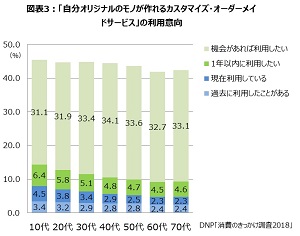 図表3 : 自分オリジナルのモノが作れるカスタマイズ・オーダーメイドサービス」の利用意向