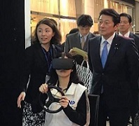 クールジャパン戦略を担当する松山政司内閣府特命担当大臣がブース内のシニアVRトレーニングサービスを視察されました(左)。