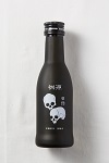 (左)上方落語家 桂よね吉氏、(右)「髑髏図」をあしらった日本酒「枡源」(参加者へのお土産)