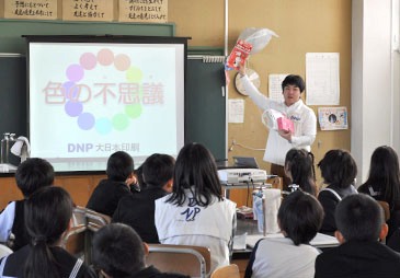 DNPでは、「次世代育成」支援の社会貢献活動および「次世代育成支援対策推進法」の行動計画における施策の一環として、印刷と関係深い「色」をテーマとした『DNP出張授業』を実施しています※。