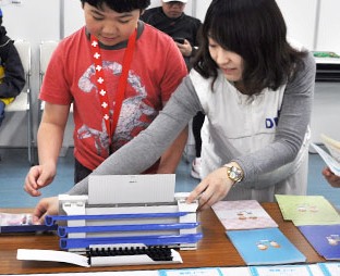 2014年3月30日(日)、DNPは東京・北の丸公園の科学技術館で開催された「第72回全日本学生児童発明くふう展」で、出張授業「本づくりのひみつ」と題したワークショップを実施し、定員を超える92名の児童に参加いただきました。