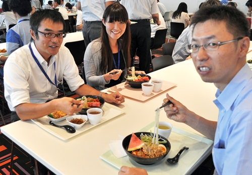 社員食堂で「東北応援メニュー」を選ぶことによって、多くの社員が寄付活動に参加することができます。2013年度は、全国22拠点の社員食堂で、56,720食を提供しました。東北応援メニューの売上の5%に、会社がマッチングギフトを加えて寄付金としました。