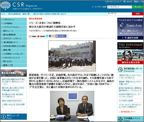 「CSRマガジン」にDNPの東日本大震災関連の記事が掲載されました