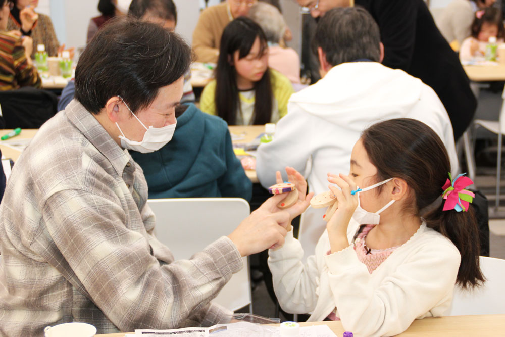 第5回セミナー(2/7)は、『森の豊かさ』をテーマとしました。公益財団法人日本自然保護協会の幸地彩子氏に豊かな森とその森から受ける恵みについてお話いただくとともに、カスタネットづくりのワークショップを行いました。群馬県赤谷の森の風倒木(ふうとうぼく・強風を受けて倒れた立ち木)から作られたカスタネットに色を塗り、個性豊かに仕上げました。樹種によって木の色や音色が異なることに驚きの声があがりました。