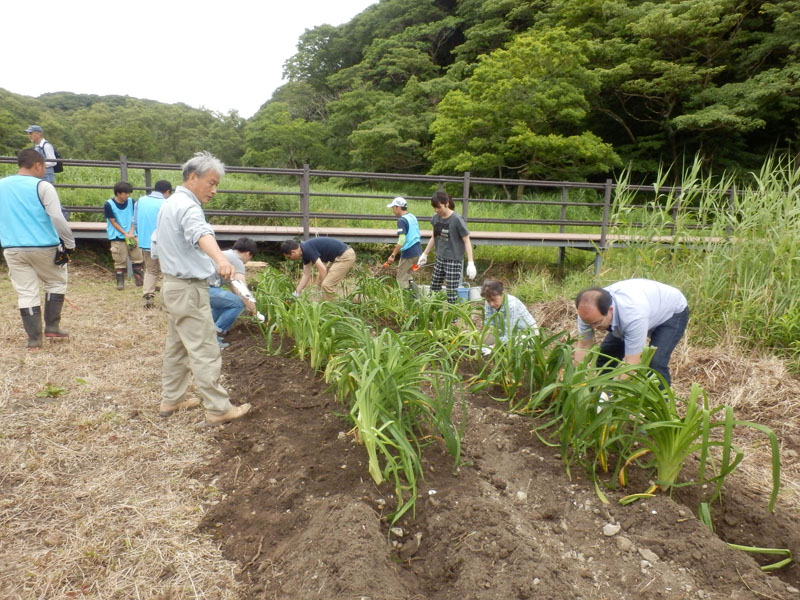 2016年6月16日、DNPテクノパックは、NPO法人鶴見川流域ネットワーキング/小網代の森の維持管理を担うNPO小網代野外活動調整会議の代表理事である岸 由二先生の指導のもと、本来の生息地である小網代の森へ82株のハマカンゾウを返還しました。