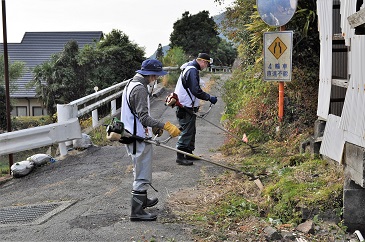 長期避難指示が解除されてもなお、全ての住人の方が立野地区には戻れず、周囲には長期間留守の住宅や空家、また住宅を解体し更地になっている場所があります。そのような手付かずの場所周辺の除草等の維持・管理や、自宅に戻ったものの、人手が足りないため片付け等に手が回らないといった状況でした。活動は2日ともに、7つの班に分散をして神社の清掃、村道・宅地の除草、個別のお宅での清掃・不要物片付け、小屋の解体作業等の活動にあたりました。
