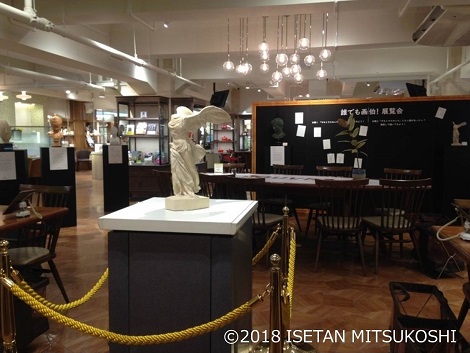 イベント会場に併設されたカフェエリアには「サモトラケのニケ」など複数の複製彫刻が展示され、カフェを楽しみながら彫刻作品をスケッチすることができます。出来上がったスケッチは会場に設置したボードへの掲示が可能で、さまざまな来場者のスケッチも楽しむことができます。