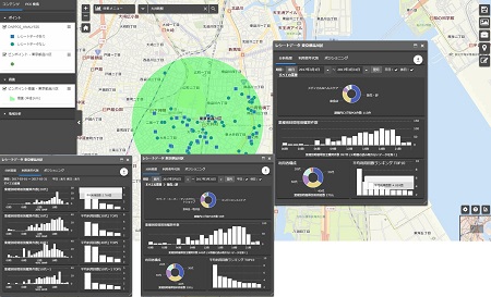 地図データを活用して迅速かつ合理的な意思決定を実現するGISプラットフォームを基盤とし、直観的に使いやすいインターフェイスで、地域分析全般や、情報の閲覧、分析レポートの作成ができるクラウドサービスです。