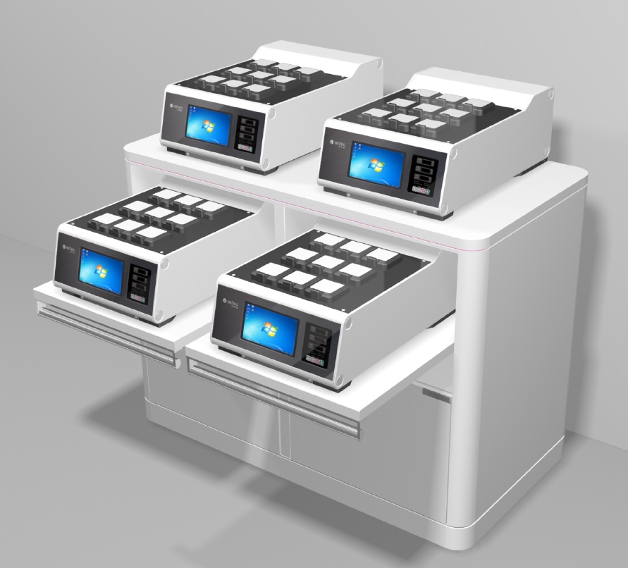 幅382×奥行き591×高さ210mmと、従来の機器に対して、大幅に小型化しました。設置場所に余裕のないクリニックでも導入しやすく、2台を重ねて設置することも可能です。