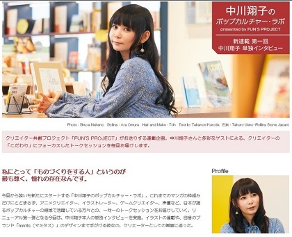 「FUN’S PROJECT」がお送りする連載企画。マンガやアニメに造詣が深い中川翔子さんと多彩なゲストによる、クリエイターの「こだわり」にフォーカスしたトークセッションを毎回お届けします。