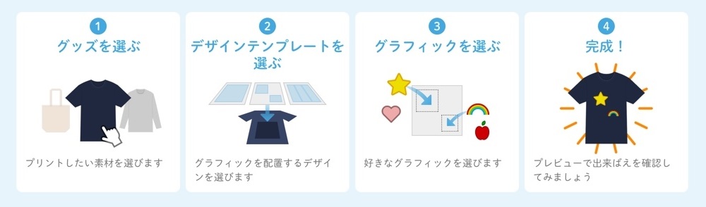 利用者は、Webサイト上でTシャツやスマートフォンケース、トートバッグなどの商品種別を選択し、用意されているテンプレートに従い好きなコンテンツのデータを組み合わせてデザインできます。オーダーメード注文により、DNPがオンデマンドで製造して配送します。