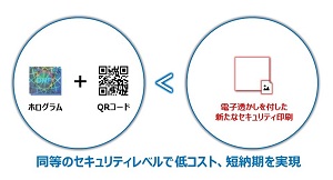 ③ ホログラムにQRコードを付した場合と同等のセキュリティレベルでより短納期・低コストで実現します。