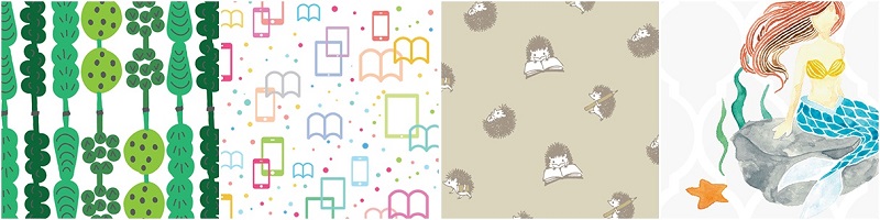 左から「jungle」「colorful dots」「Puboo(パブー)」「人魚」のブックカバーデザイン