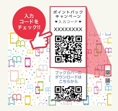 出力したブックカバーに印字されているポイントバックキャンペーンコードをhontoの専用サイトに入力すると、A4版はhontoポイントで50ポイントの還元、A3版はhontoポイントで100ポイントが還元されます。