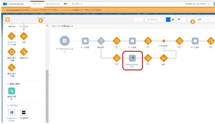 画面イメージ。カスタマージャーニビルダー上に「DNPパーソナライズドオファーサービス」のDMアイコンを表示しています。
