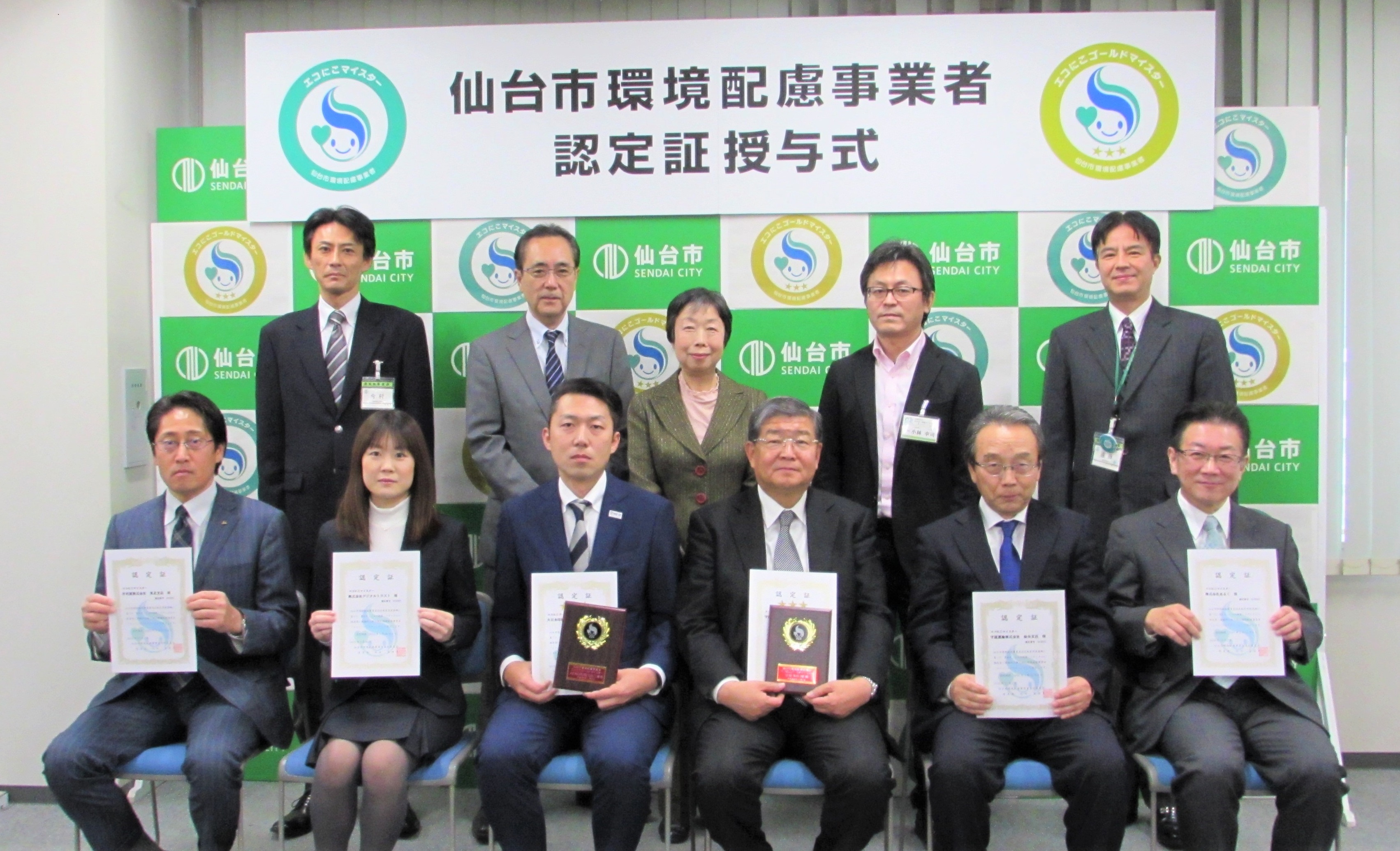 仙台工場が仙台市の「エコにこゴールドマイスター」に認定