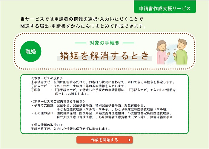 ひとり親家庭への支援に向けた申請書一括作成サービス