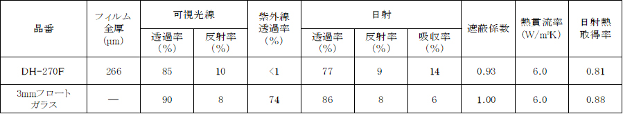 ※データの数値はJIS A 5759の方法に基づき、3mmフロートガラス貼付で測定