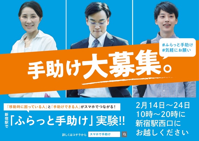 “移動時に困っている人”と“手助けしたい人”を結びつける実証実験「“ふらっと”スマホで助け合いサービス」を新宿で開始